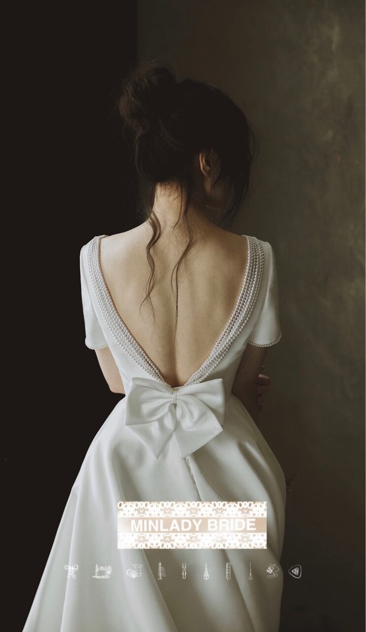 バックと袖口にパールが縫い付けられた、華やかでありながら上品さを持つドレスです♡