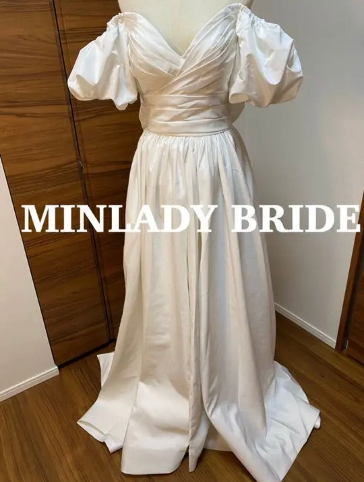 タフタ素材 オフショルダー ウェディングドレス
