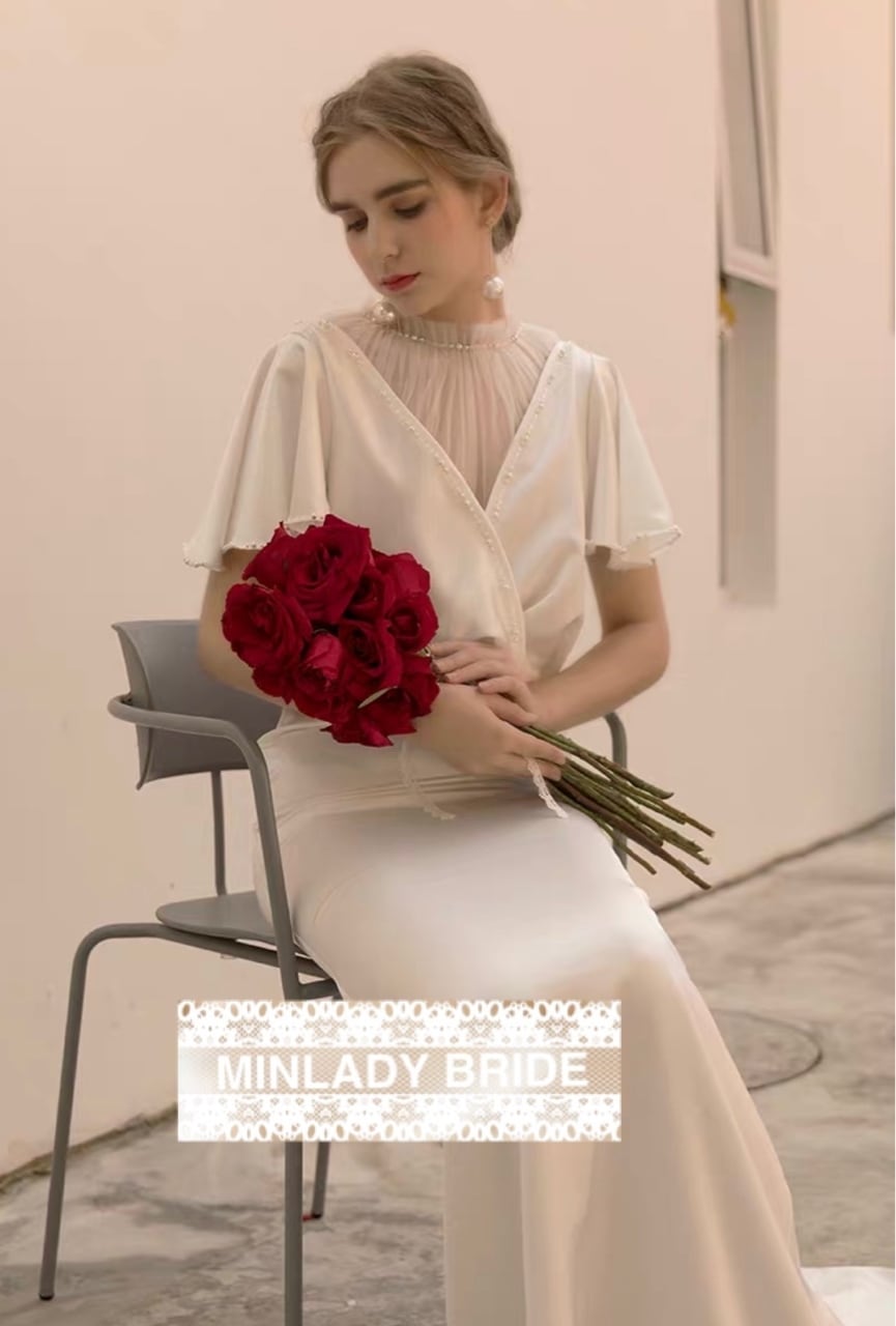 #アンティーク #半袖 #ウェディングドレス #フリルスリーブ #シルクサテン