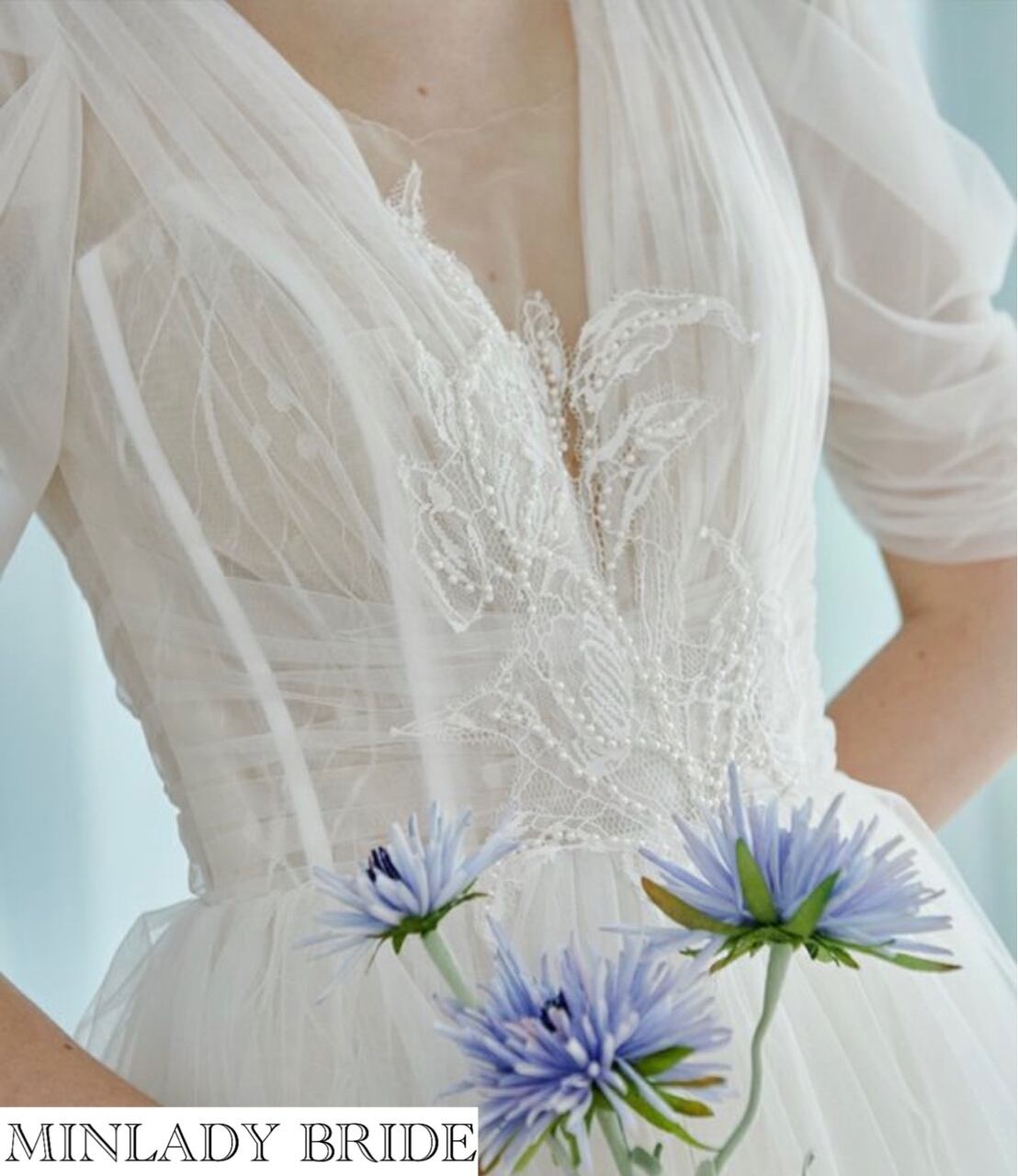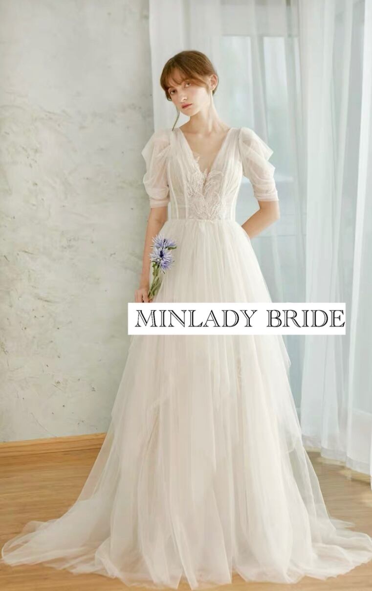 バルーンスリーブ ヴィンテージ Vネック ウェディングドレス