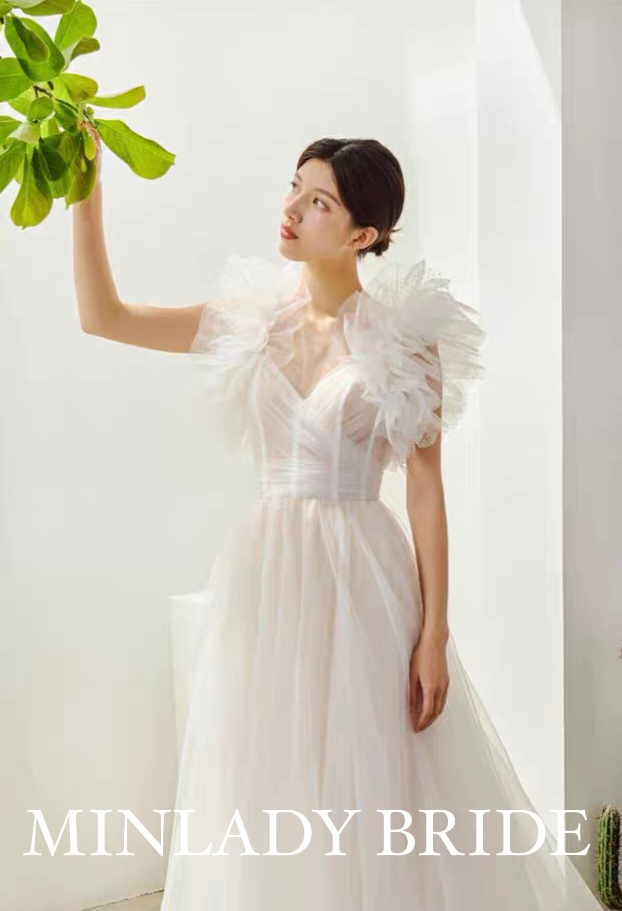 パフスリーブよりもさらにゆったり、ふんわりなフォルムが特徴的なフリルスリーブは、女性の柔らかさや優しさを象徴的に魅せてくれます。