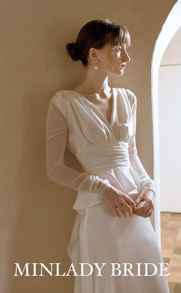 袖の透け感がエレガントなシースルウェディングドレスです。