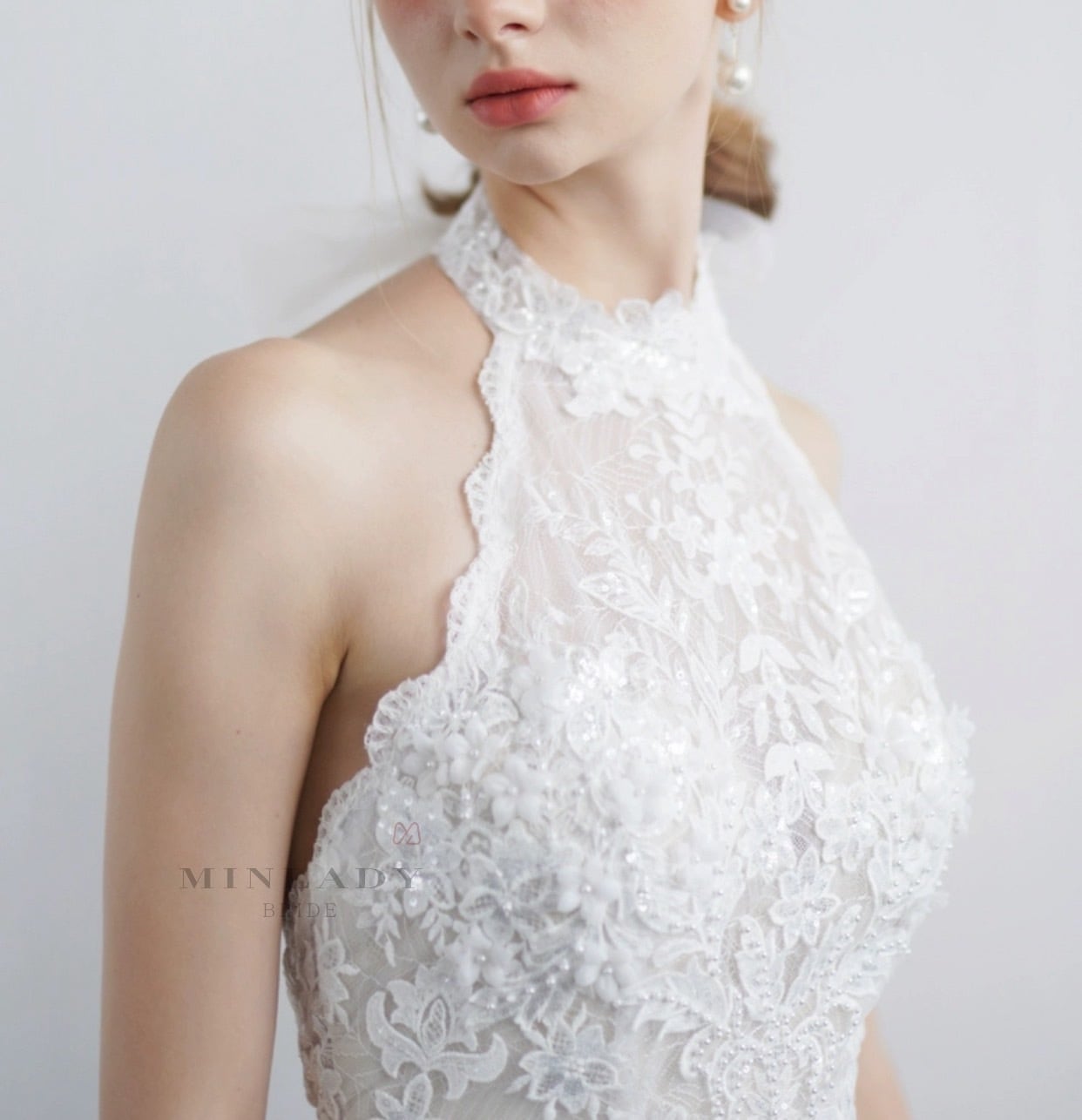 また、ホルターネックの後ろにリボンがついておりますが、リボンなしのシンプルデザインへの変更も可能ですので、お気軽にお問い合わせください。