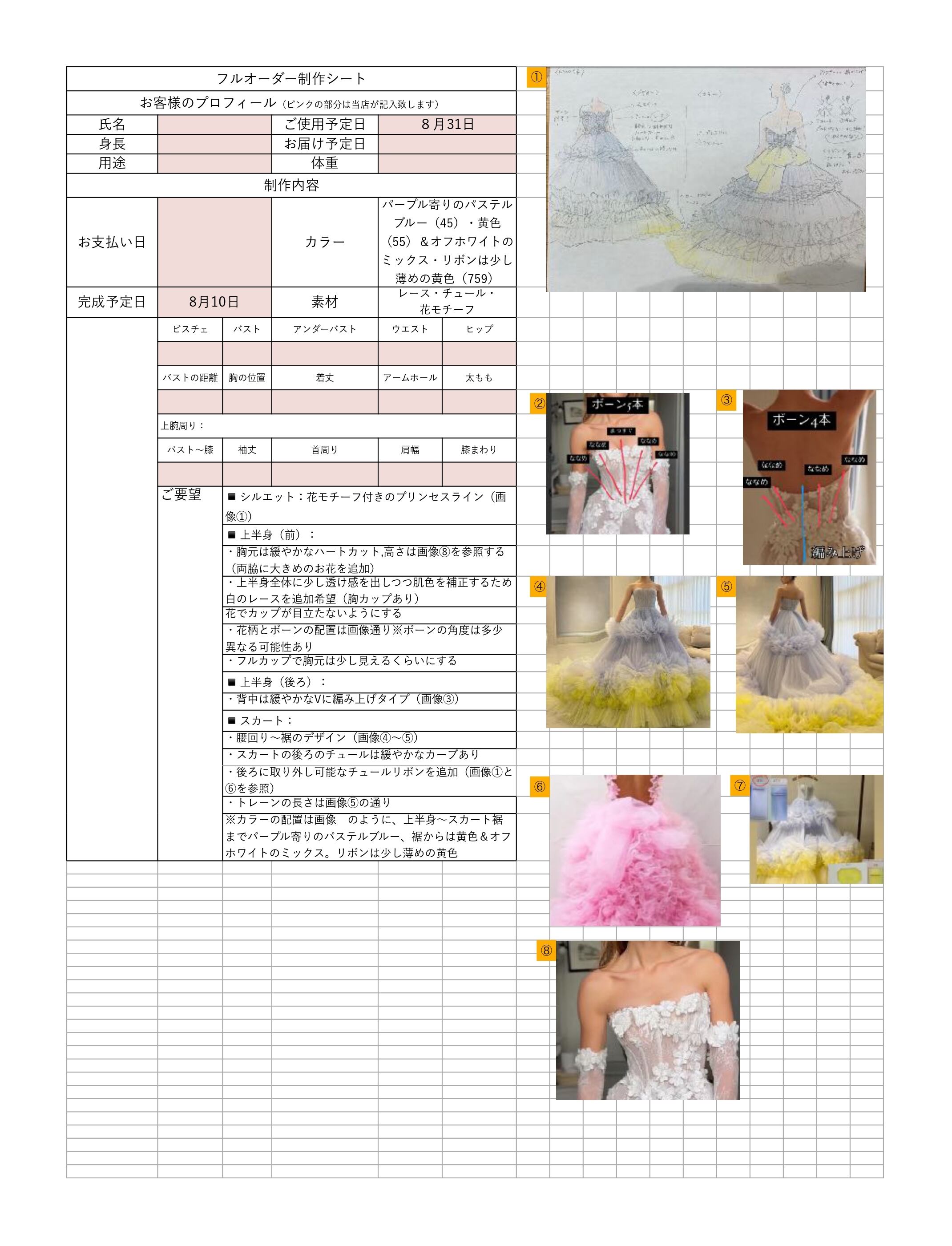 ・胸元は緩やかなハートカット,高さは画像⑧を参照する(両脇に大きめのお花を追加)